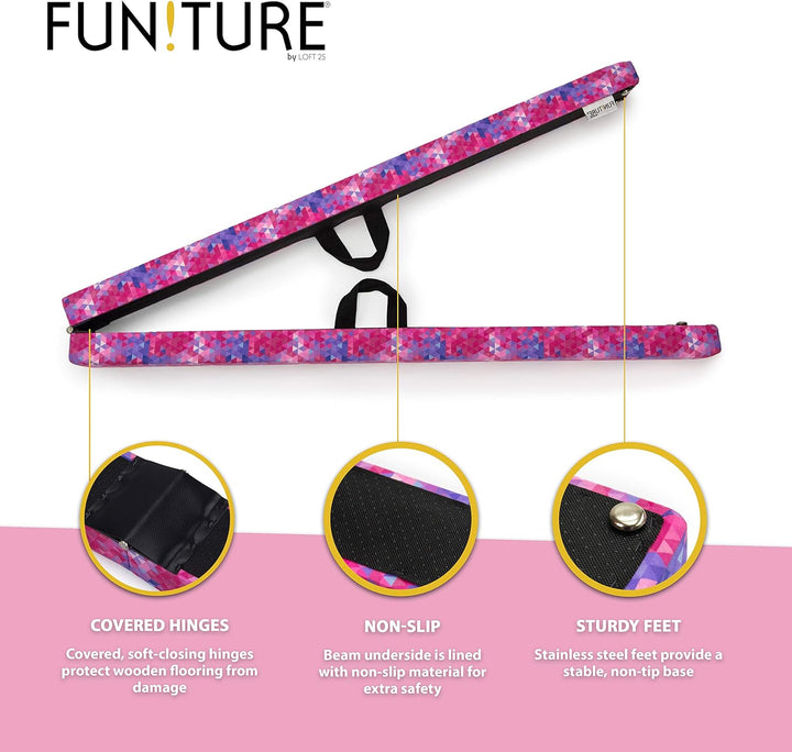 Premium Printed Faux Suede Folding Gymnastics Training Balance Beam - FREE BAG, Strap and Handles